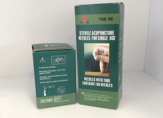100 מחטים בקופסה עם מוליך לכל מחט.