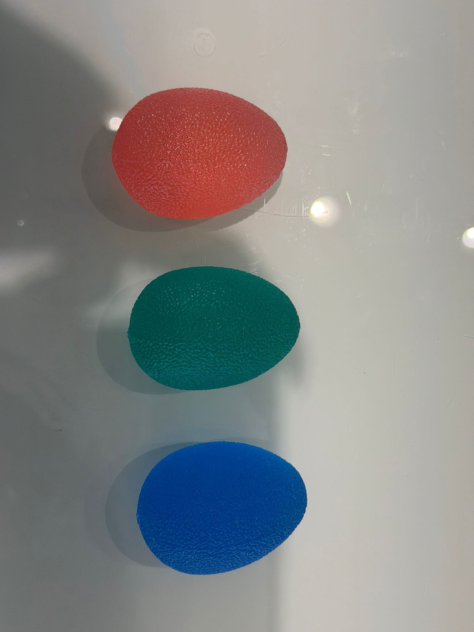 כדורי הלחץ משמשות לשיקום, חיזוק והגמשת כף היד, האצבעות והאמה, במיוחד לאחר פציעות, שבץ מוחי או דלקות. הן מגיעות ברמות התנגדות שונות (רך עד קשה) לחיזוק הדרגתי. שימוש בביצים אלו מסייע בשיפור המוטוריקה העדינה, הגברת כוח האחיזה והפחתת נוקשות.
